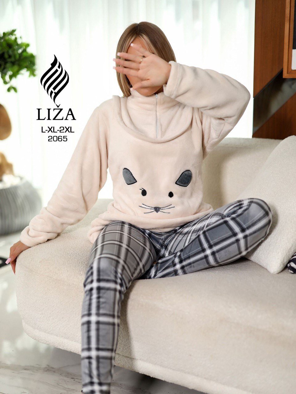 بيجامة فرو كريمي كيوت ستايل ٢ قطعة – Cream Cute Fur Style Pajama 2 Pieces