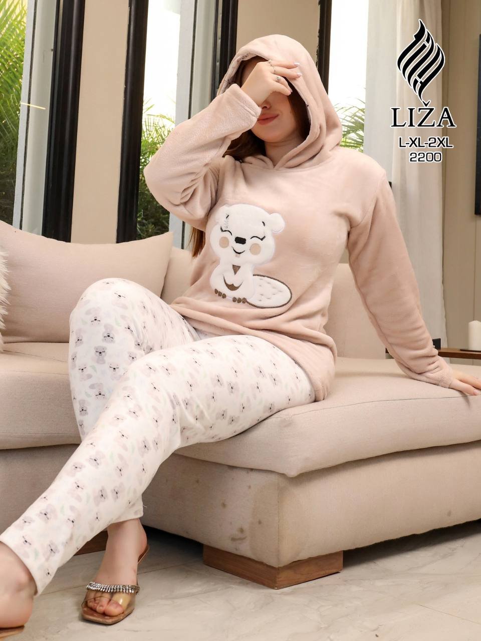 طقم ليزا تيدي بيج من فئة Home Wear، بتصميم دافئ ولمسة تيدي ناعمة تدي إحساس عالي بالراحة والدفا مع شكل شيك ومرتب.
