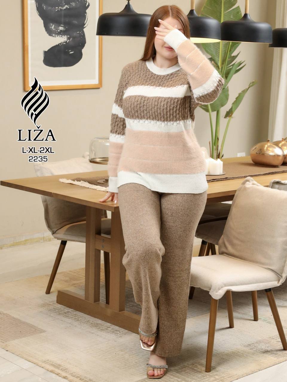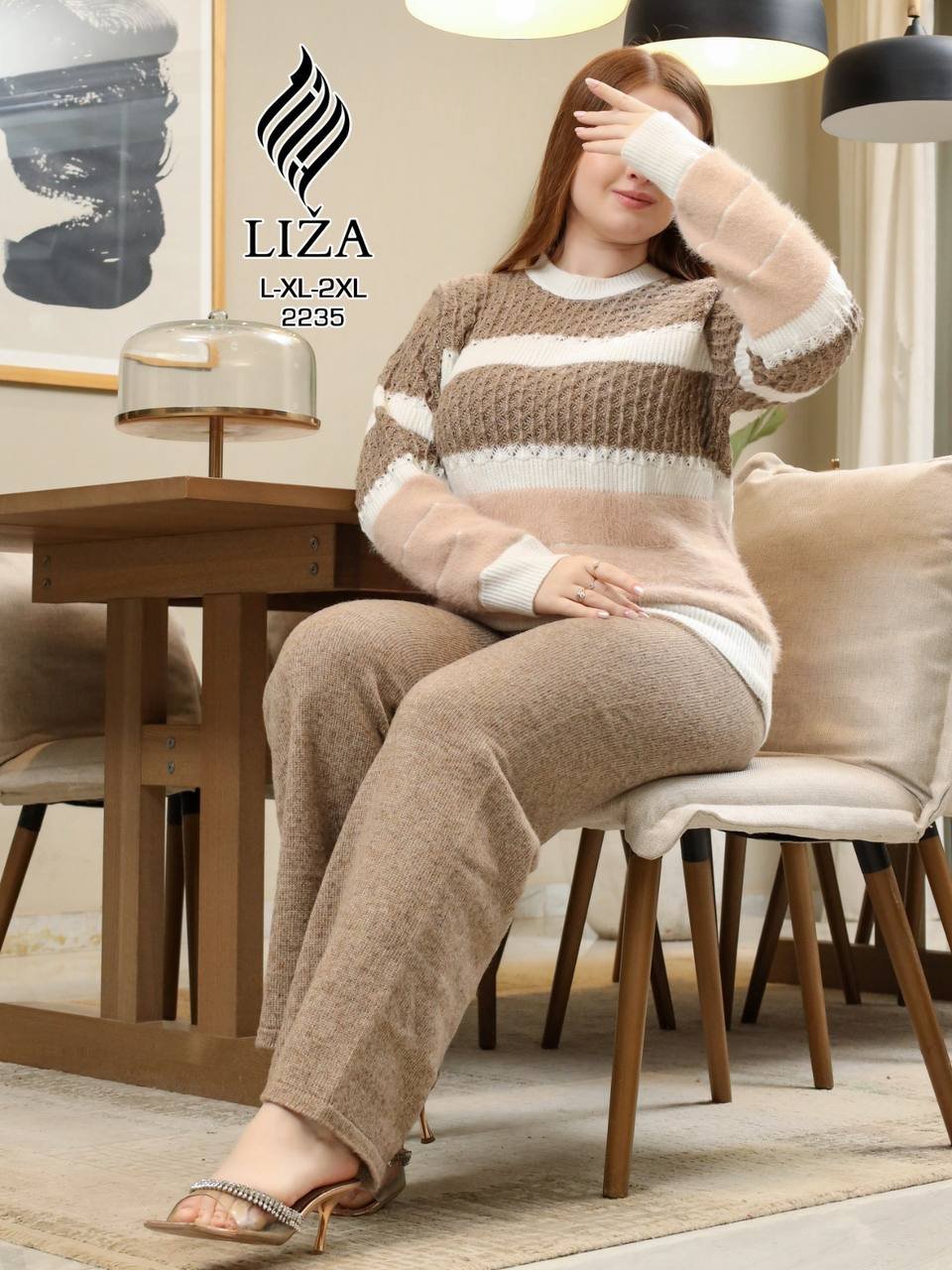 قطعة تريكو شيك من فئة Home Wear، بتصميم أنيق بخامة تريكو ناعمة تدي إحساس بالدفا والراحة مع شكل شيك وبسيط يناسب اللوك الهادي.
